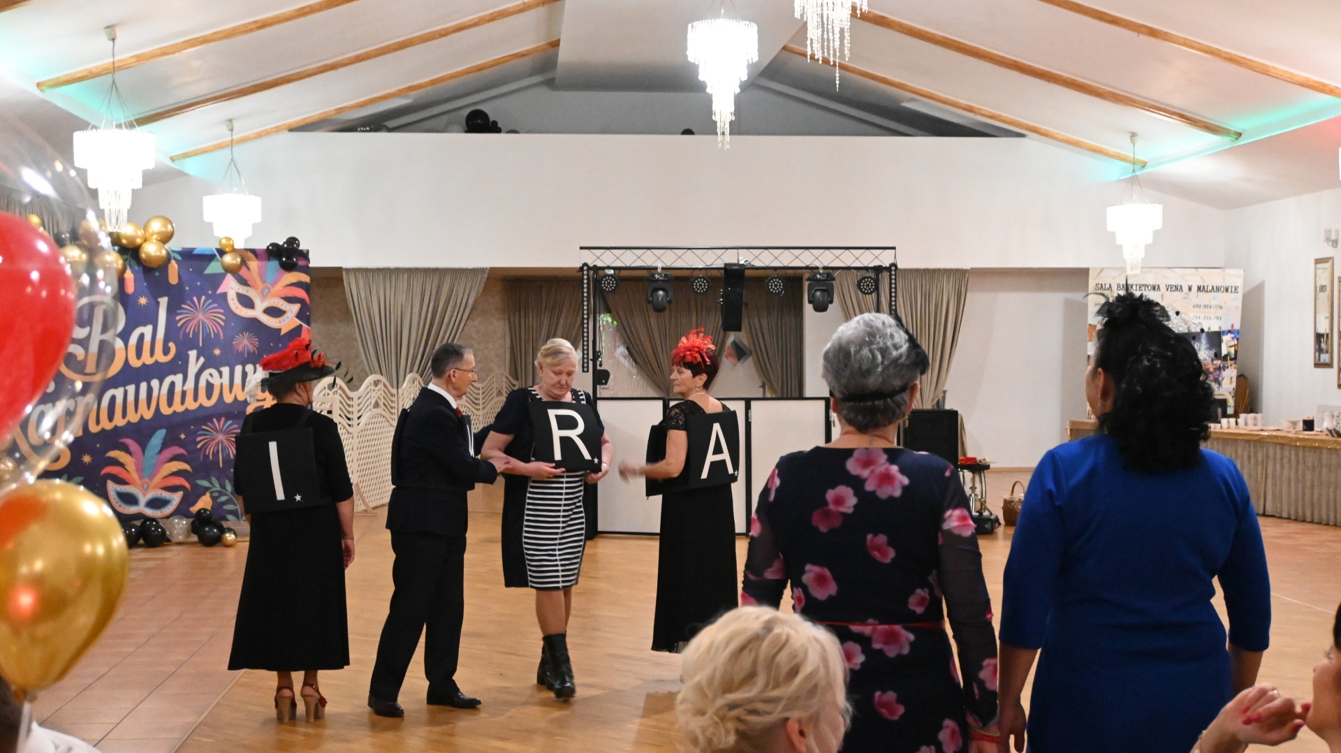 Parkiet ani przez chwilę nie był pusty. Seniorzy pokazali, że energia, radość i miłość do tańca nie mają wieku. Wspólne tańce, śmiech i śpiew sprawiły, że atmosfera była naprawdę wyjątkowa. Cieszyliśmy się, widząc jak wszyscy niezależnie od wieku bawili się razem, integrując się i spędzając czas w serdecznej, rodzinnej atmosferze. Ogromnym zainteresowaniem cieszyły się również przygotowane przez nas konkursy. Było dużo śmiechu, zdrowej rywalizacji i wspólnego dopingu. Uczestnicy z zaangażowaniem brali w nich udział, pokazując dystans do siebie i fantastyczne poczucie humoru. To właśnie takie momenty budują wspomnienia, do których wraca się z uśmiechem.