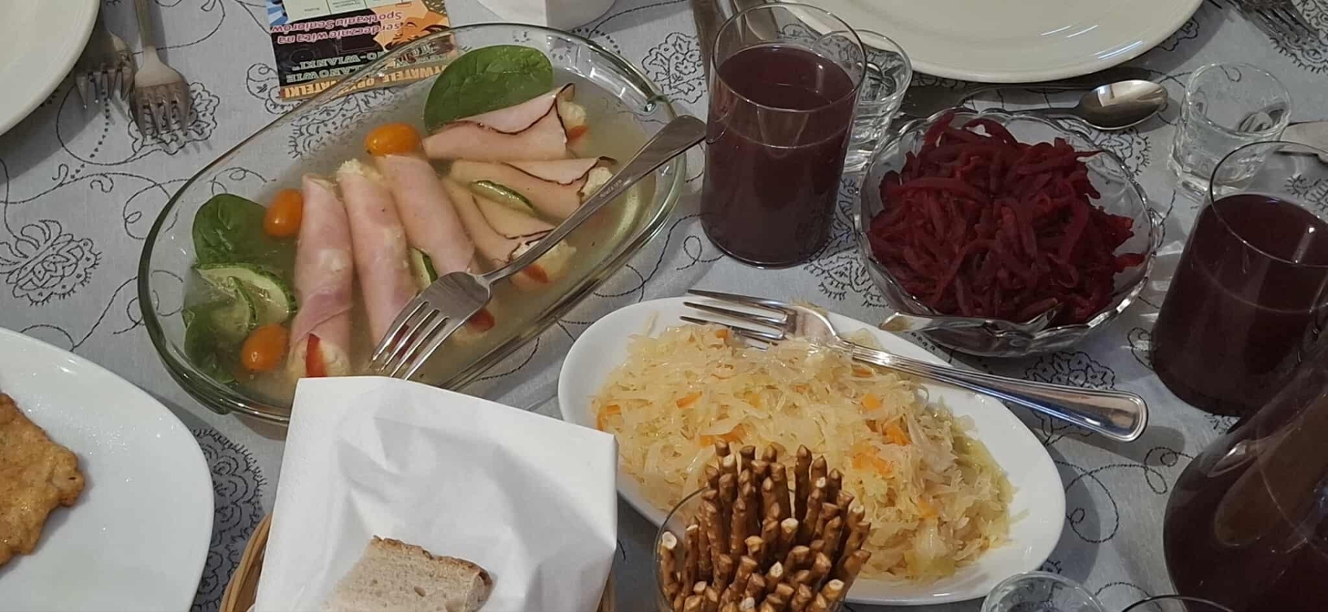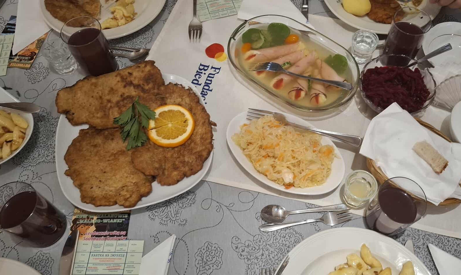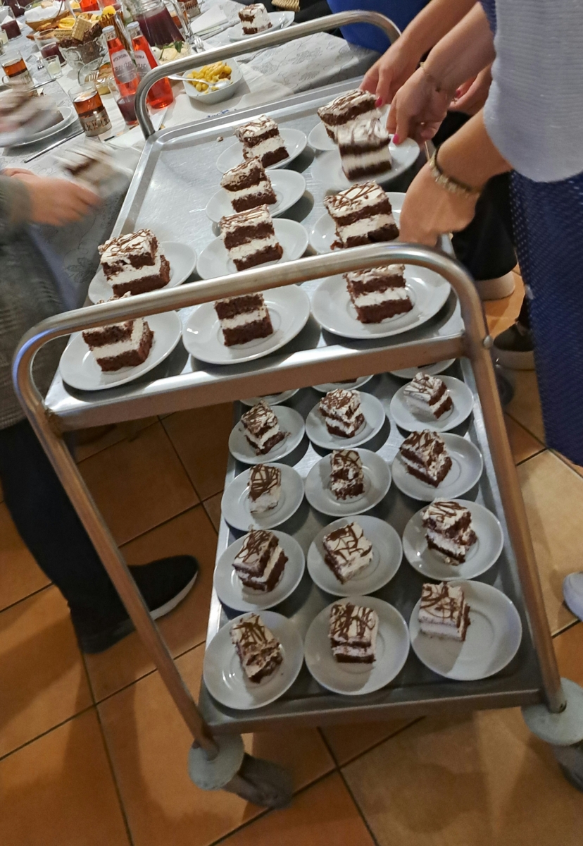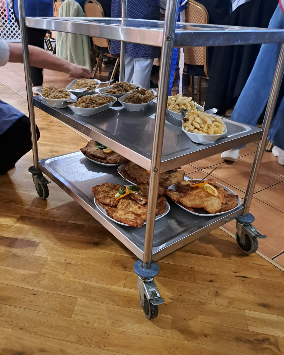 Członkinie naszego koła wcieliły się w panie z baru mlecznego i z uśmiechem serwowały klasyczne potrawy z tamtych lat. Na stołach pojawiły się prawdziwe przeboje kuchni PRL-u: wuzetka, szyszki, wafle z masą czekoladową, galareta, a także schab podany z kopytkami, ziemniakami, surówkami i buraczkami. Do picia oczywiście obowiązkowa oranżada i kompot.