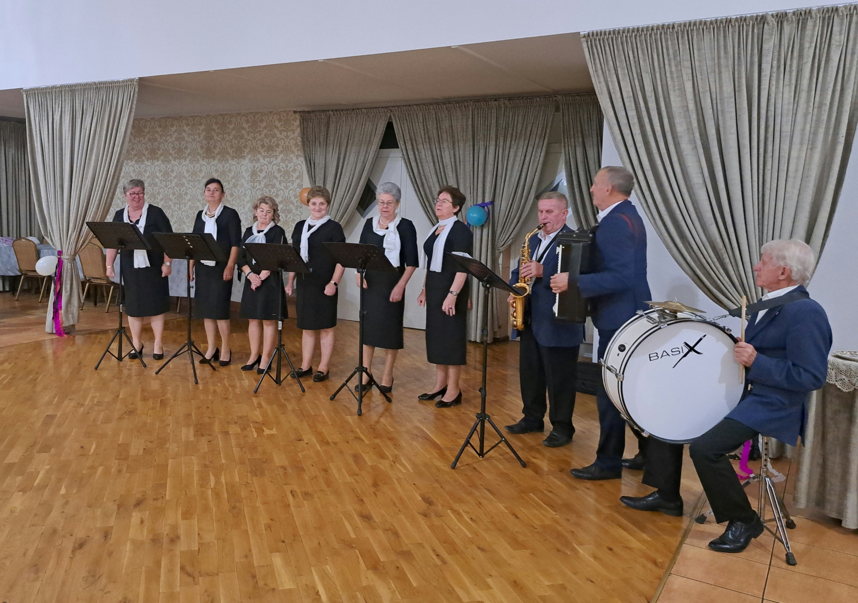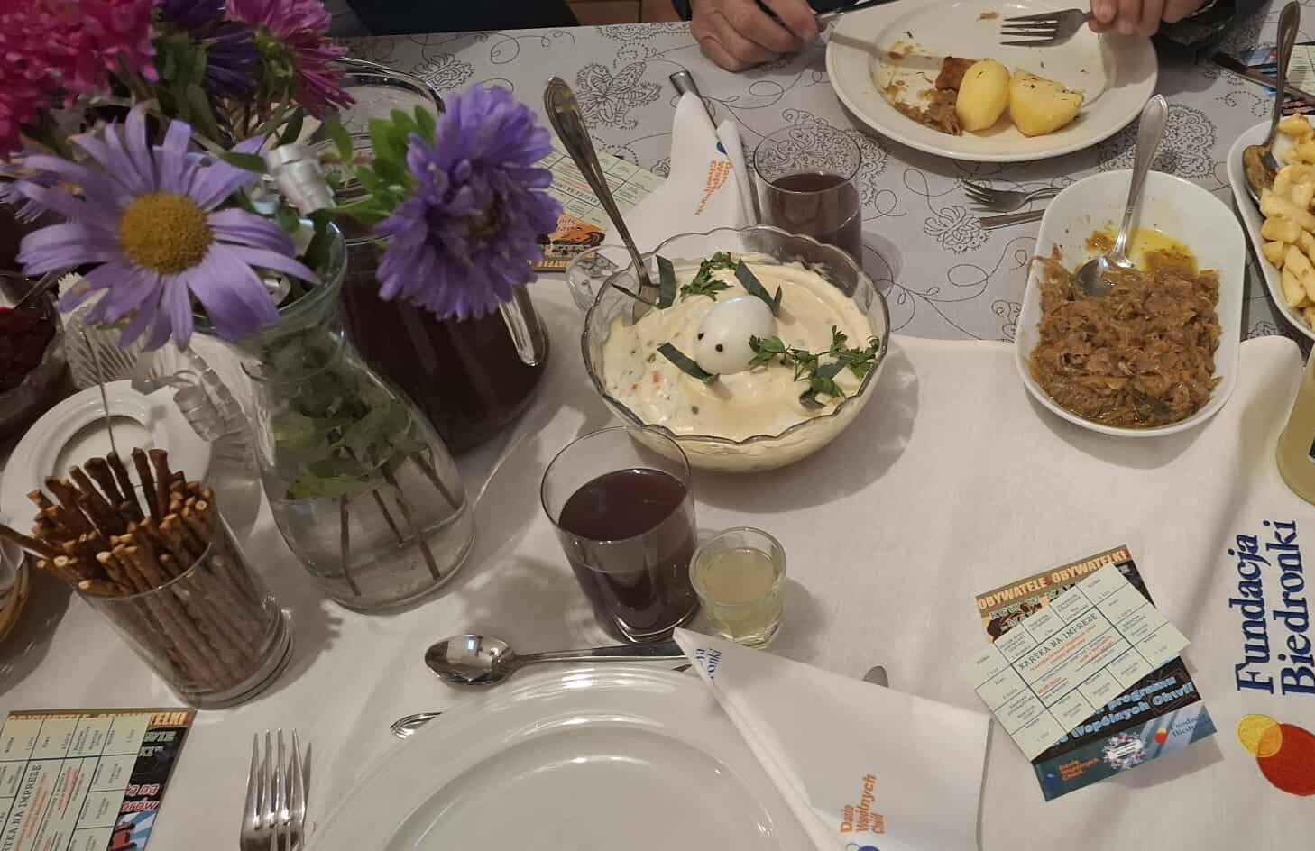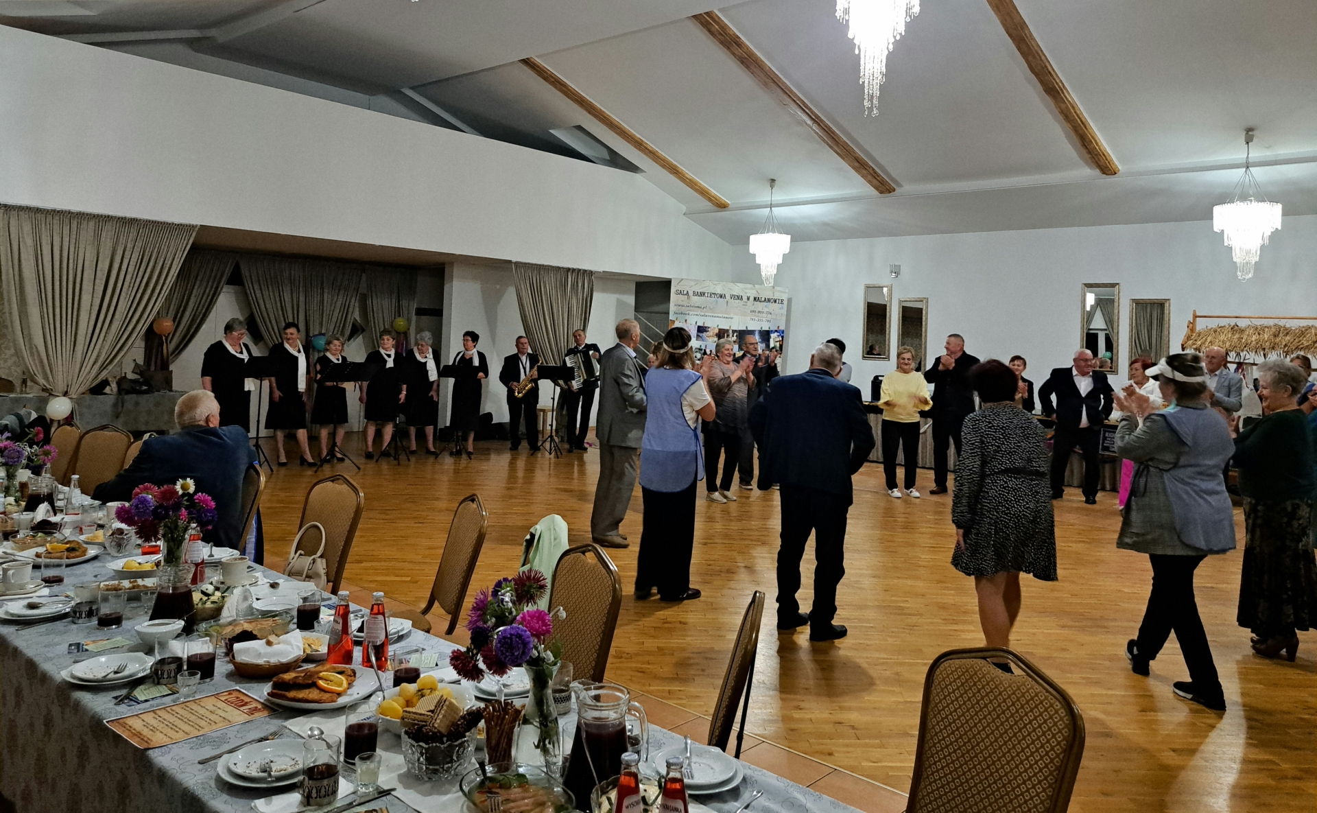 Nie zabrakło też wspólnej zabawy. Na parkiecie zorganizowaliśmy dancing w klimacie lat 70 i 80, przy muzyce charakterystycznej dla tamtych czasów. Była także muzyka na żywo, oprawę zapewnił Zespół Tradycja, z którym wspólnie z seniorami zaśpiewaliśmy piosenkę przygotowaną specjalnie na konkurs „Pokolenie na scenie” organizowany przez Fundację Biedronka.