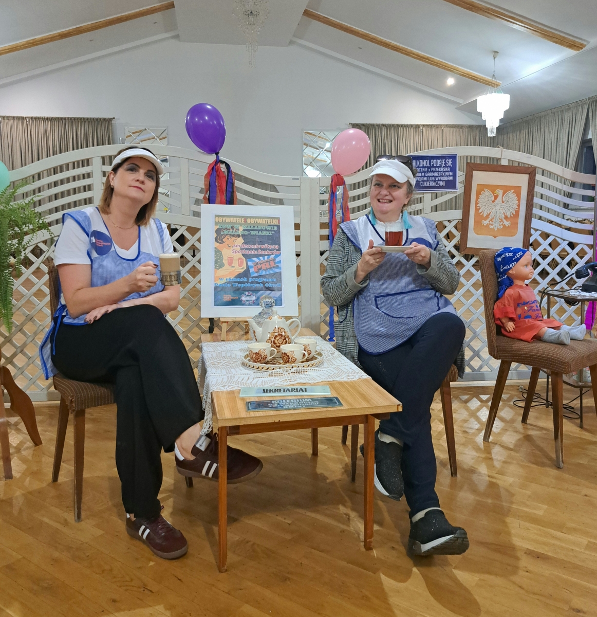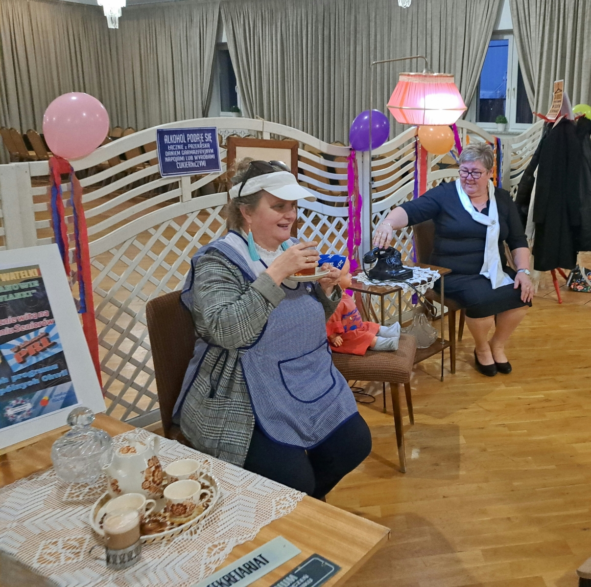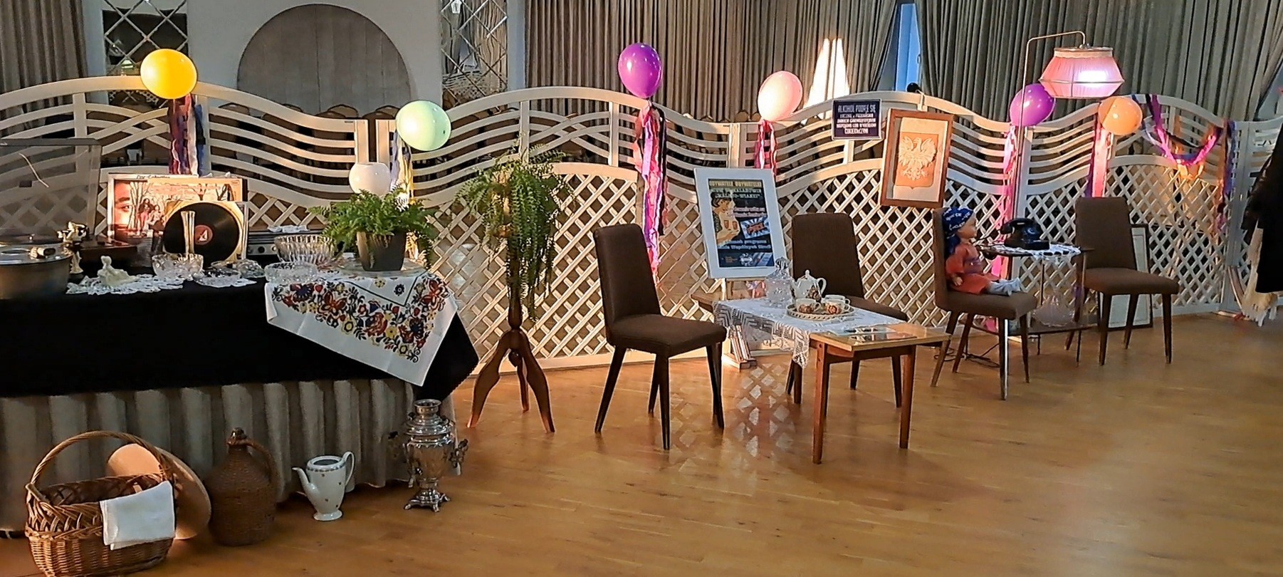 Sala została udekorowana w klimacie dawnej epoki: pojawiły się plakaty, stare sprzęty oraz rekwizyty, które przypomniały uczestnikom młodość. Dodatkową atrakcją była mała wystawa przedmiotów z PRL-u, którą seniorzy z zainteresowaniem oglądali.
