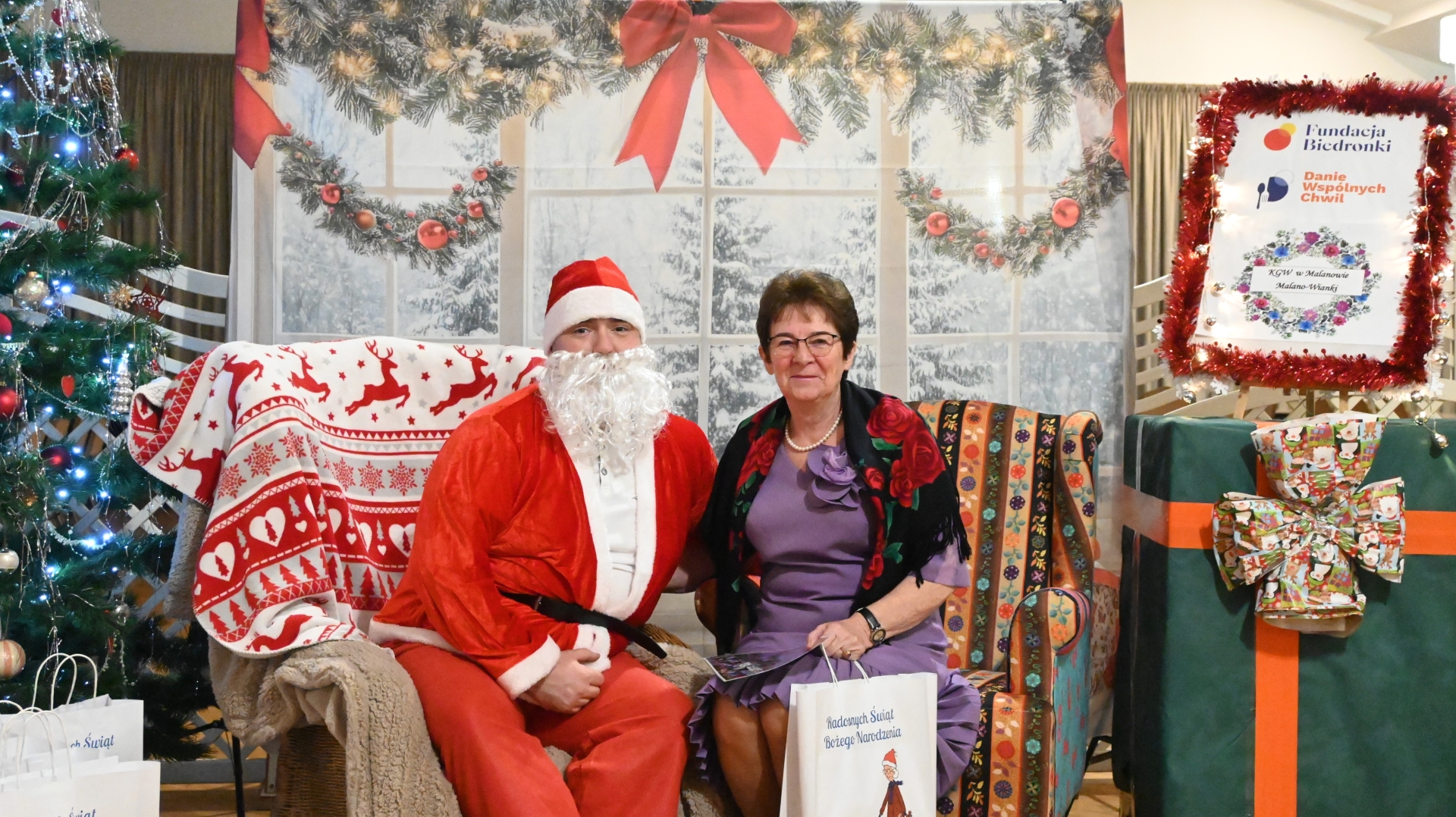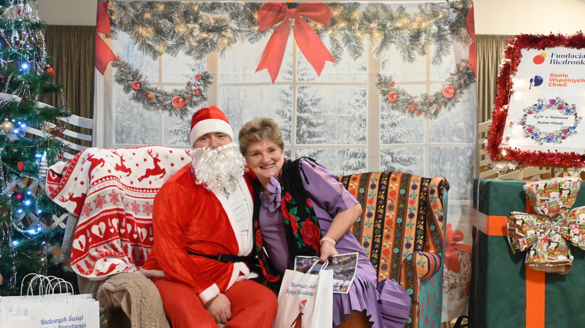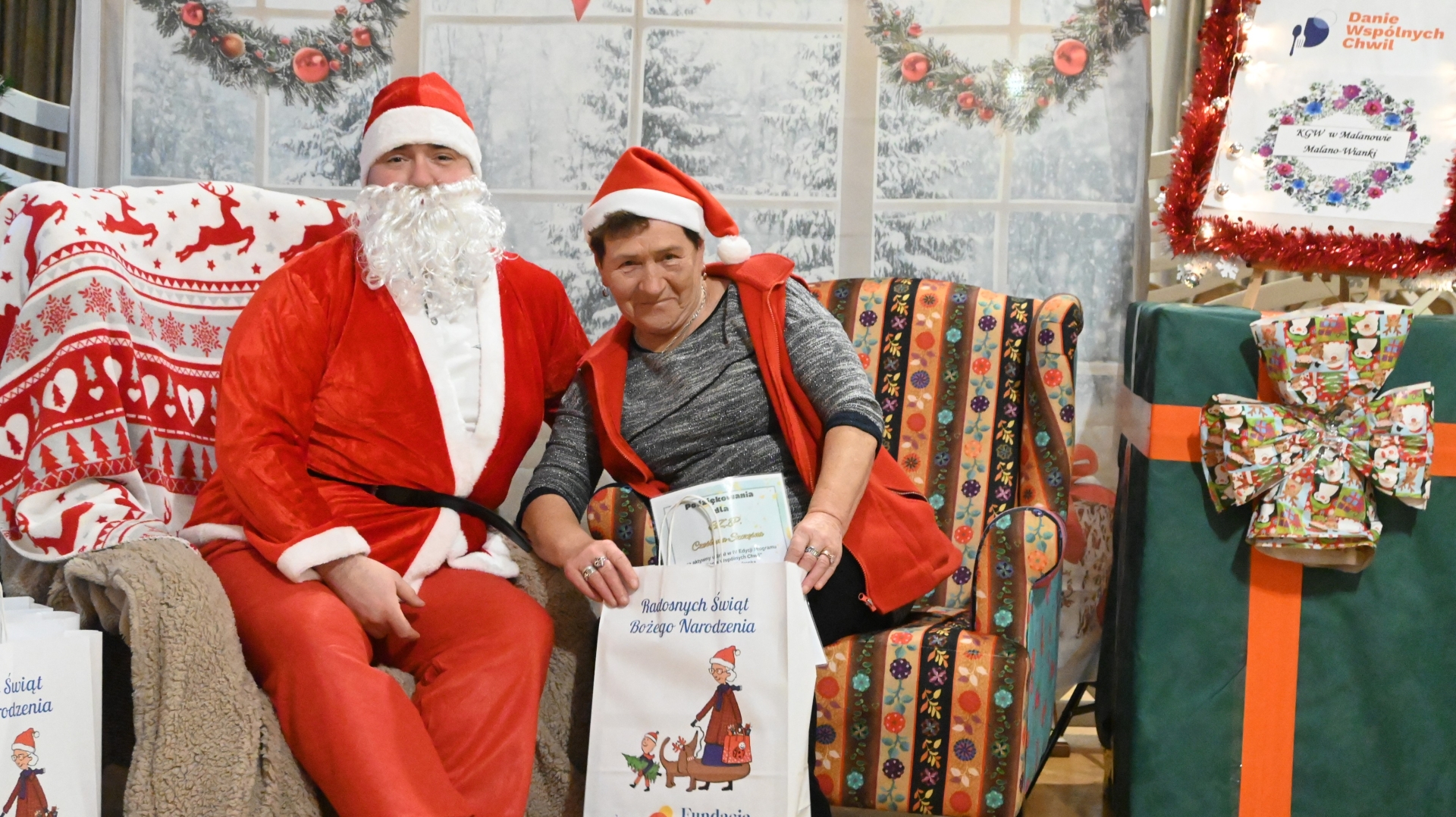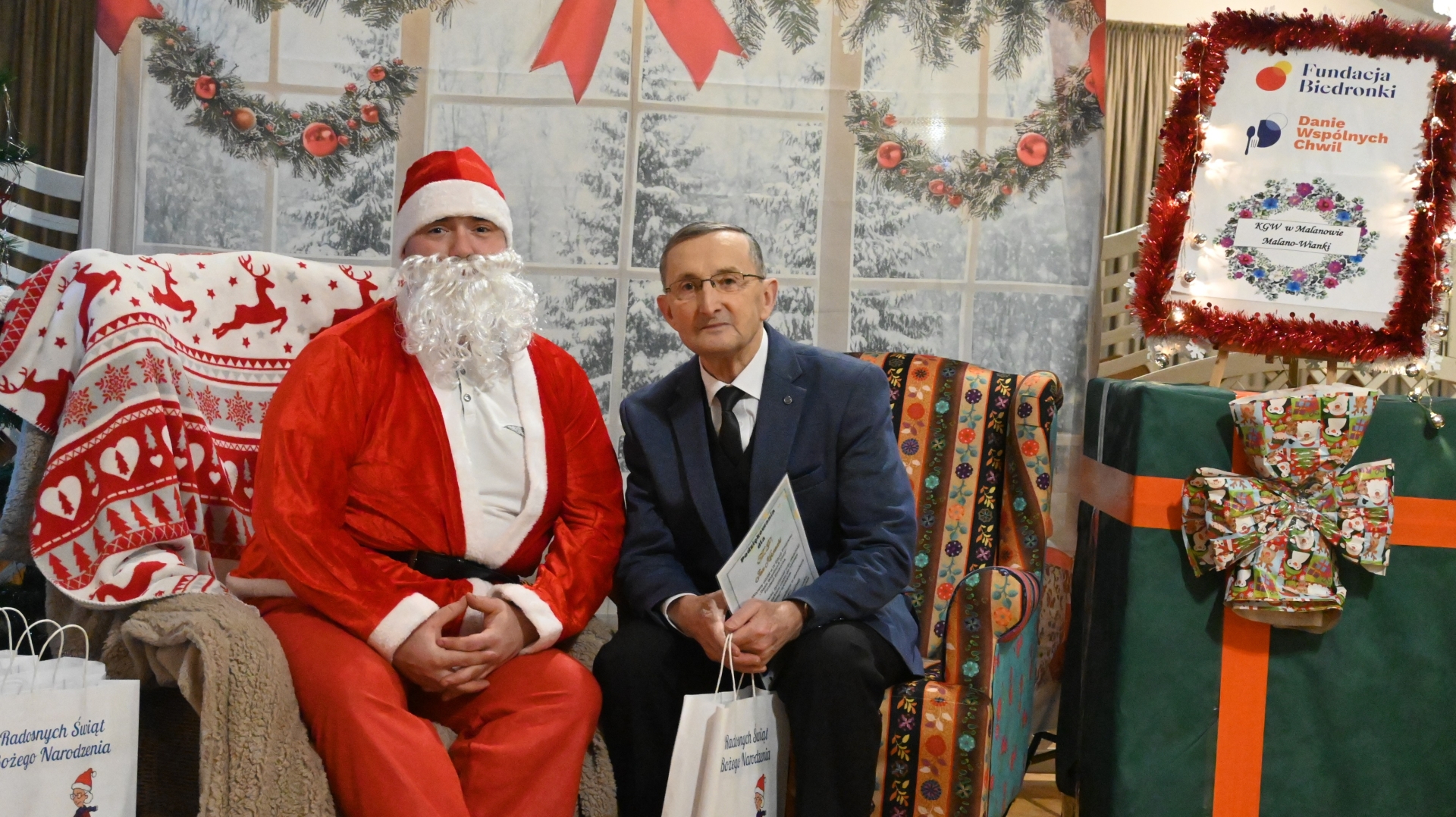 Nie mogło zabraknąć również wyjątkowego gościa Świętego Mikołaja, który dostarczył uczestnikom wiele uśmiechu i wzruszeń. To właśnie on wręczył upominki przygotowane przez Fundację Biedronka, zarówno seniorom, jak i członkom Koła Gospodyń Wiejskich Malano-Wianki.