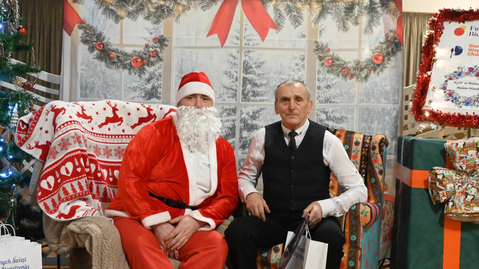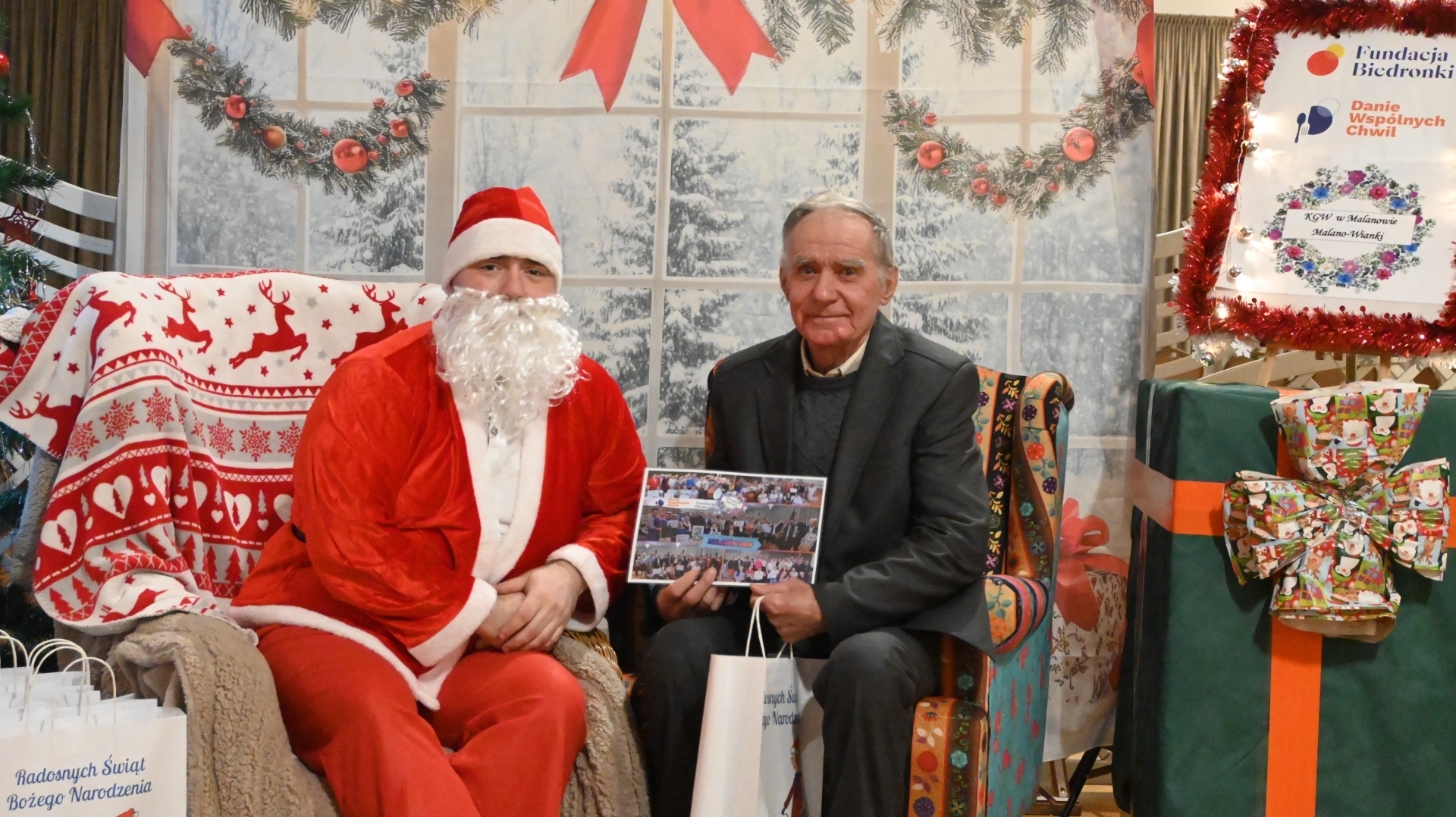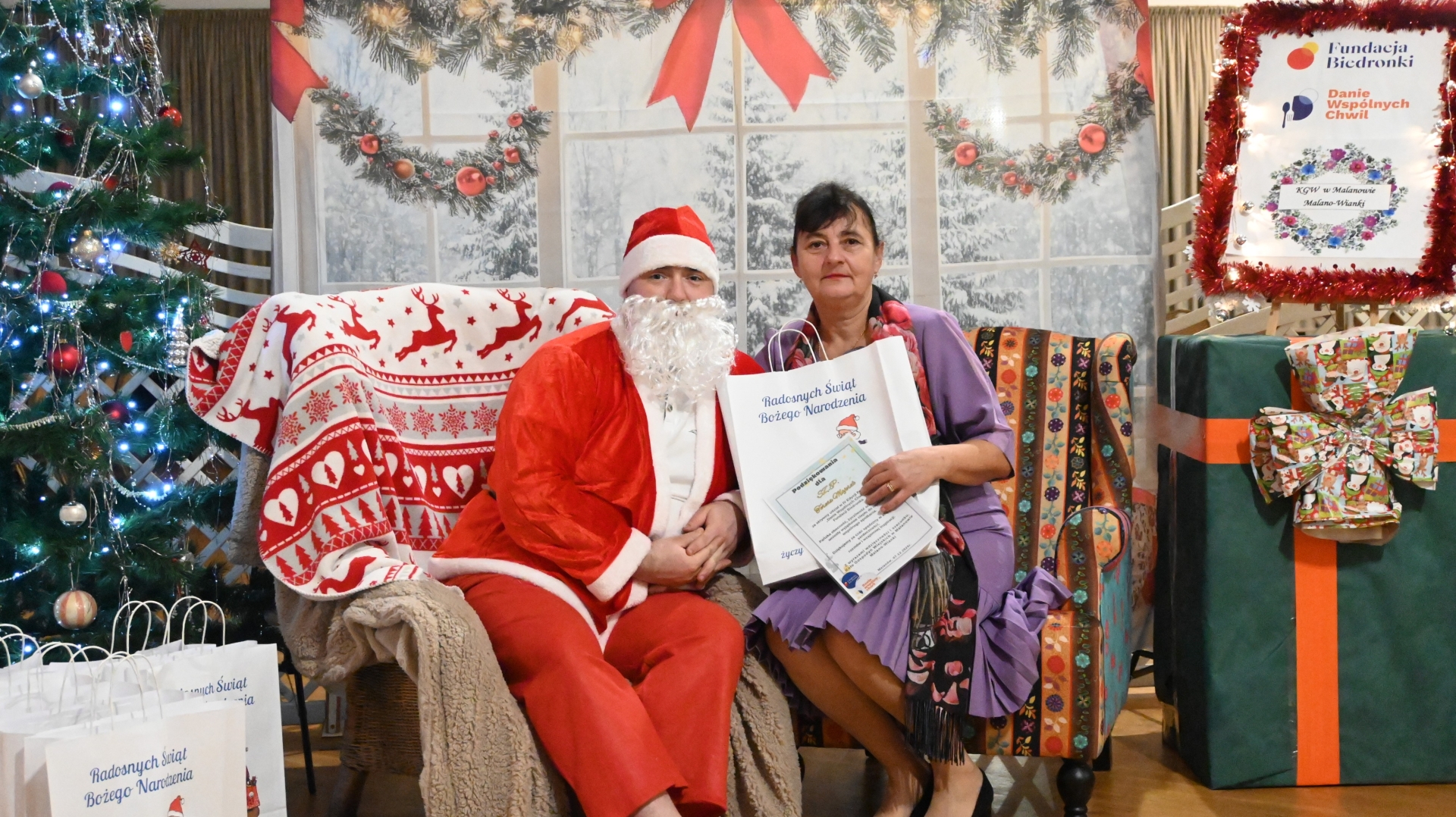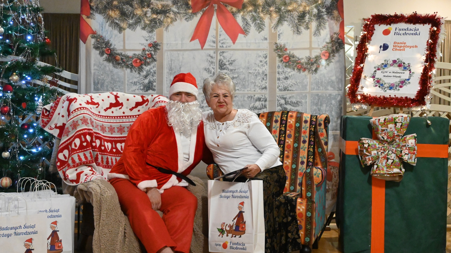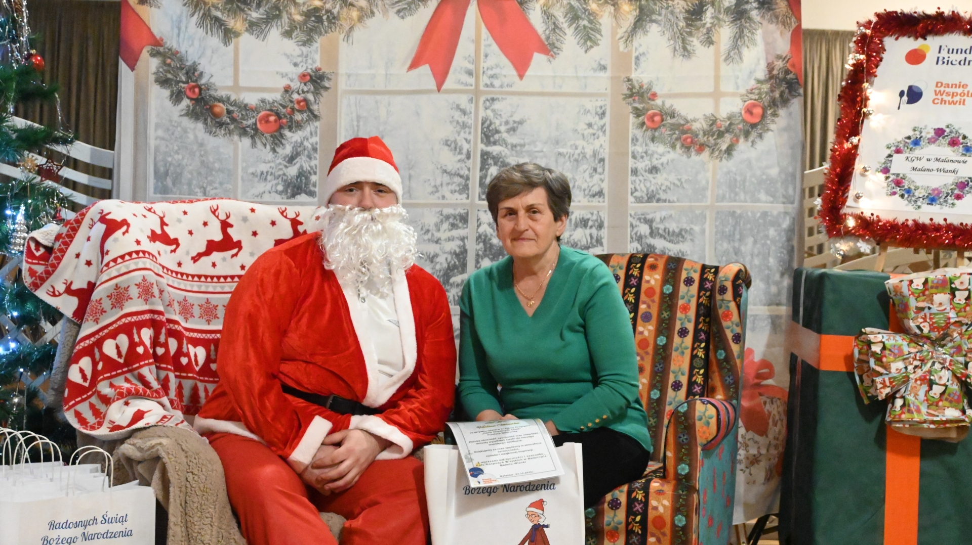Nie mogło zabraknąć również wyjątkowego gościa Świętego Mikołaja, który dostarczył uczestnikom wiele uśmiechu i wzruszeń. To właśnie on wręczył upominki przygotowane przez Fundację Biedronka, zarówno seniorom, jak i członkom Koła Gospodyń Wiejskich Malano-Wianki.