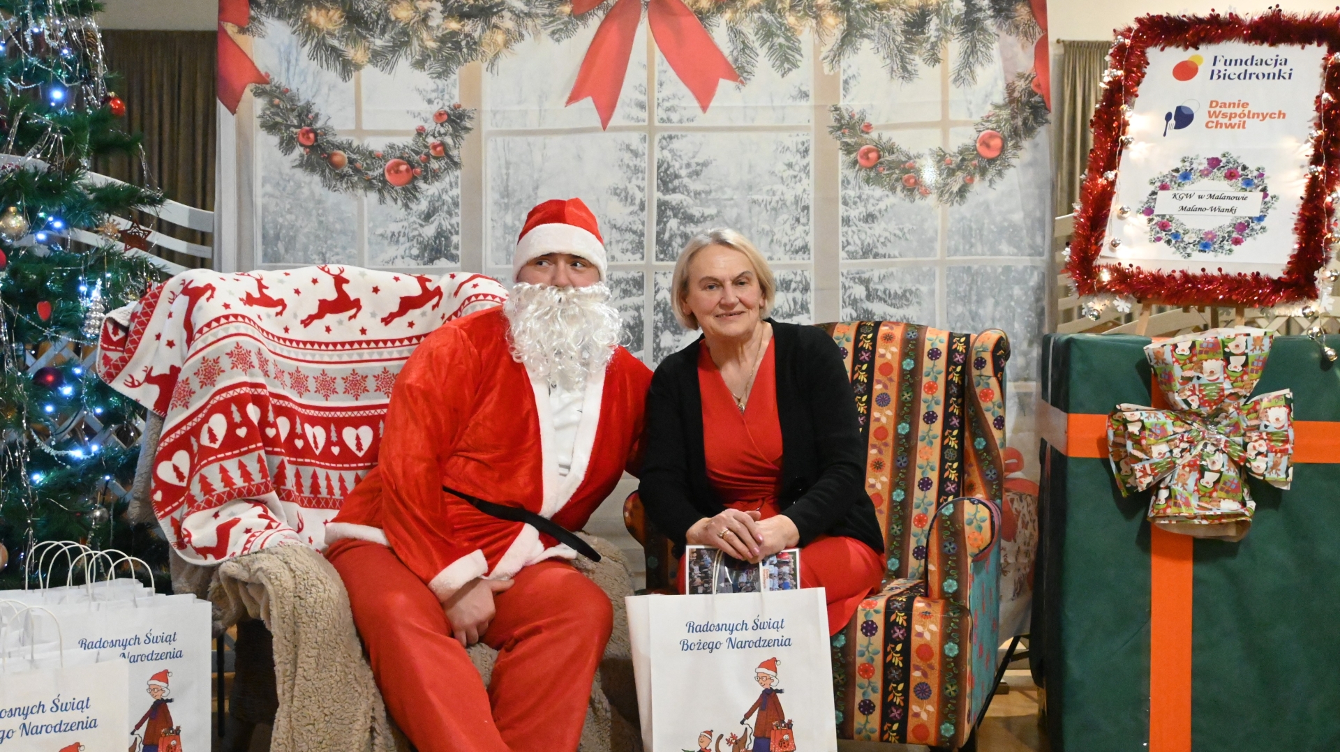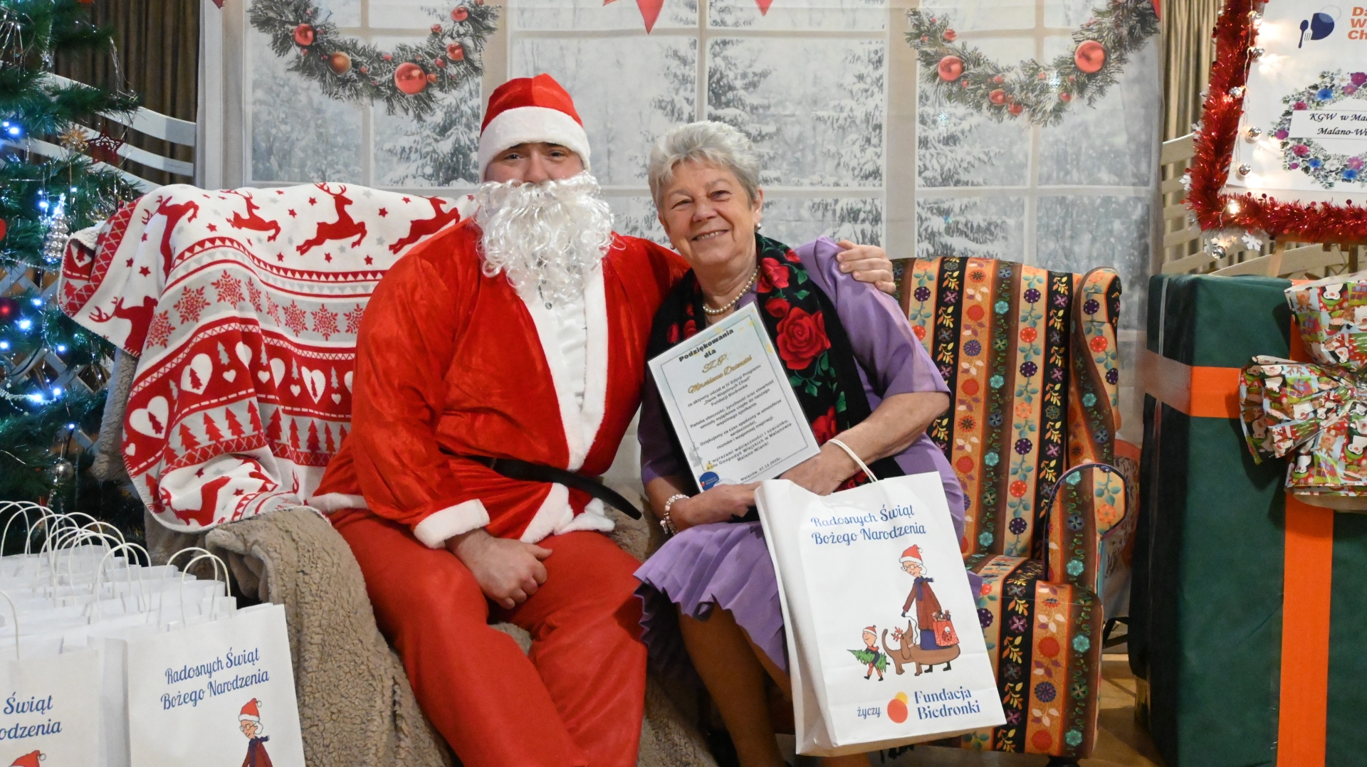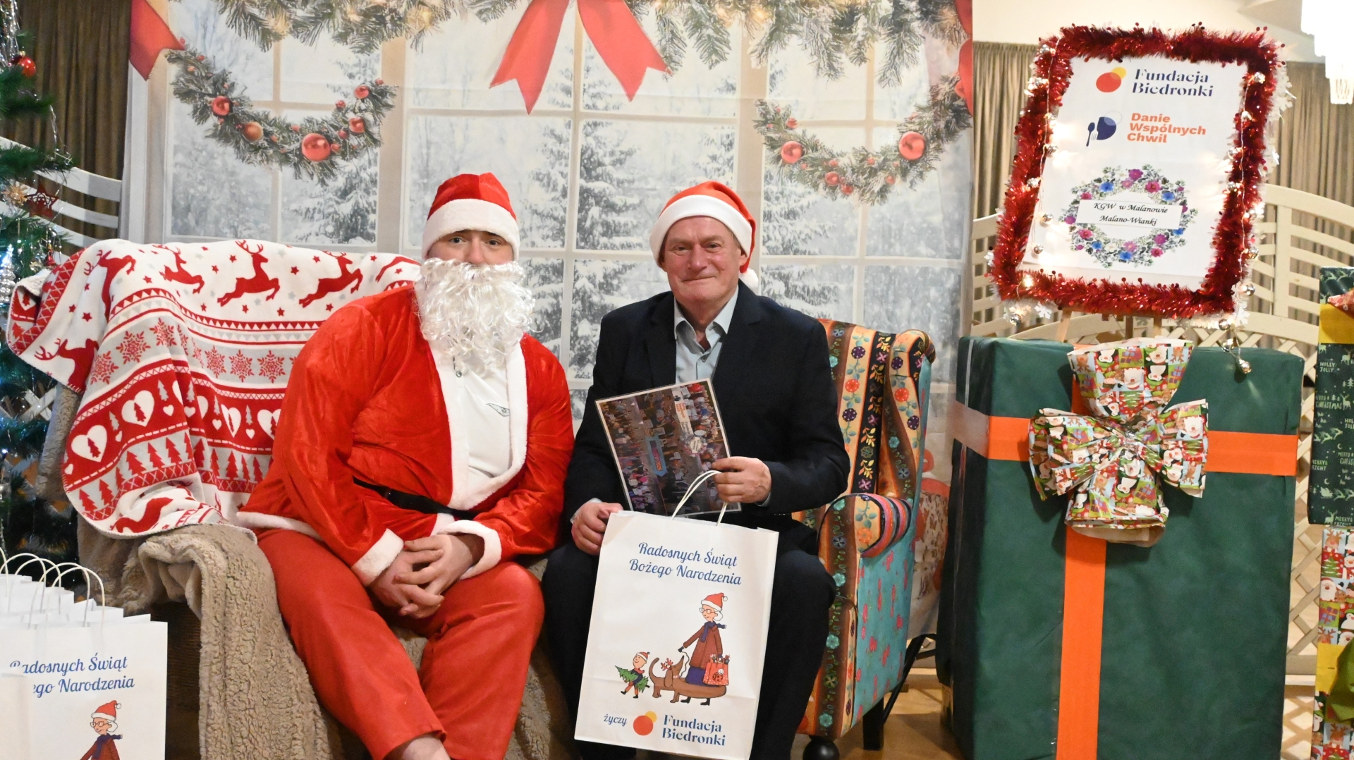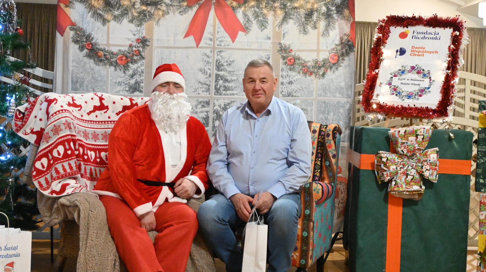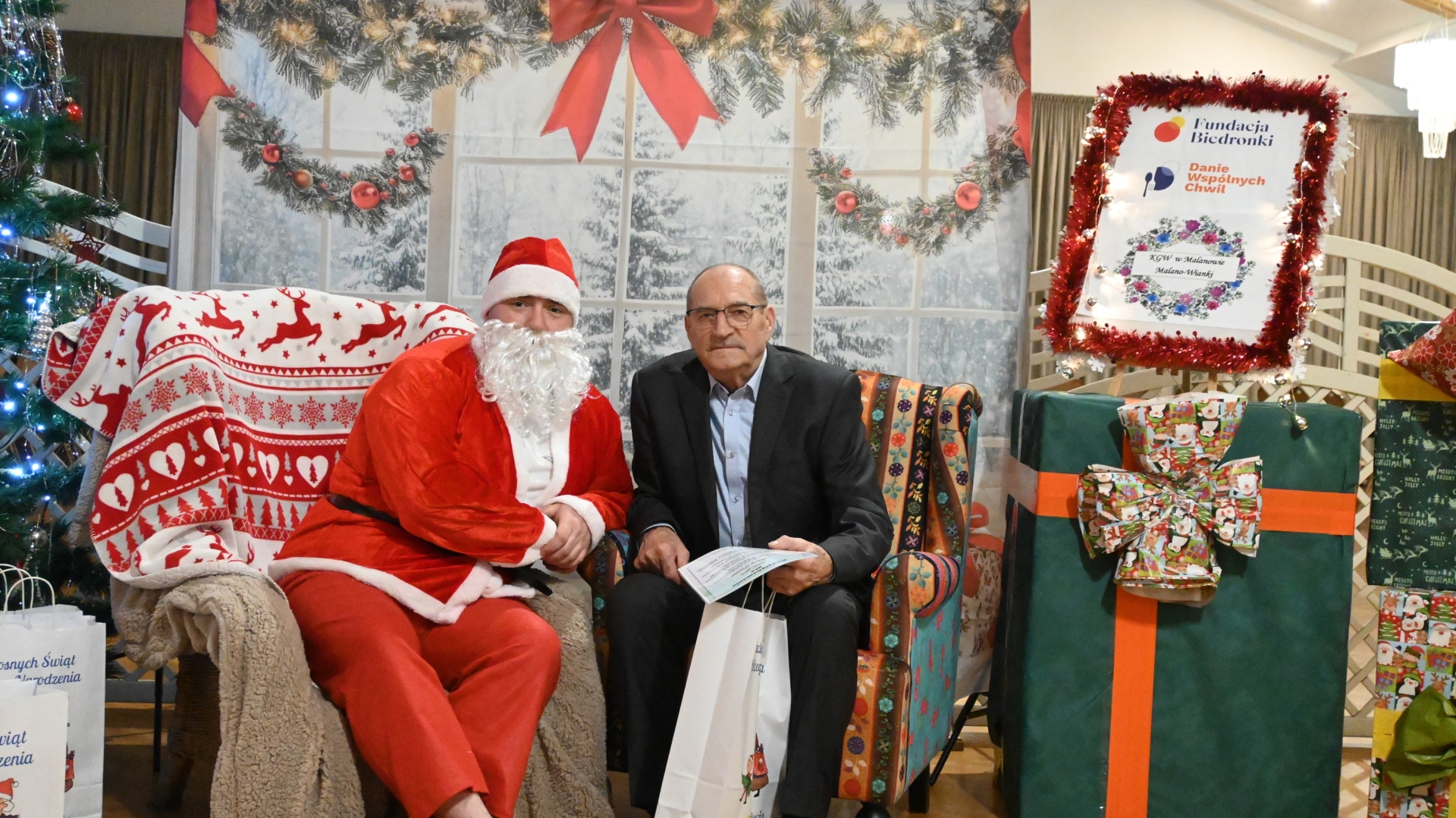 Nie mogło zabraknąć również wyjątkowego gościa Świętego Mikołaja, który dostarczył uczestnikom wiele uśmiechu i wzruszeń. To właśnie on wręczył upominki przygotowane przez Fundację Biedronka, zarówno seniorom, jak i członkom Koła Gospodyń Wiejskich Malano-Wianki.